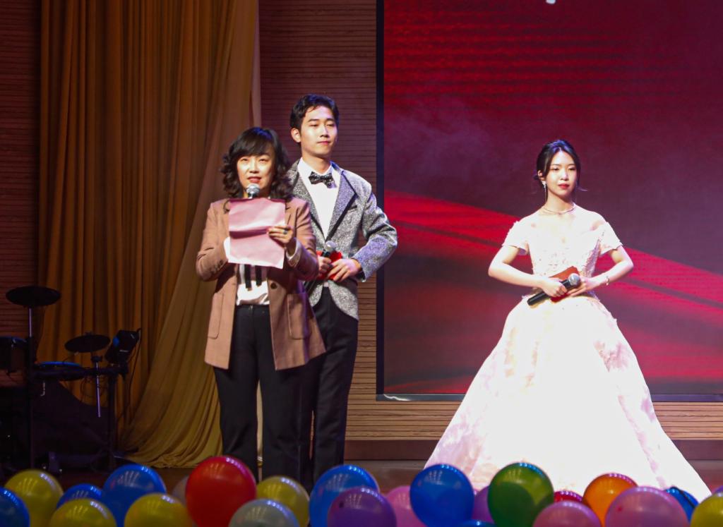 奋斗的青春,闪光的梦想。伴随着如期而至的五四青年节,新浦金350vip官方“踔厉奋发二十大,五四青春耀芳华”五四晚会暨颁奖典礼于5月8日晚在学生活动中心举行,在场师生欢聚一堂,共度青春盛会。校学生处副处长李和凤,校团委副书记田韶华,新浦金350vip官方院长赵涓涓,党委副书记郭飞,副院长冯秀芳、曹锐,党政办主任赵杰,实训部主任王星魁出席,学院师生参加。