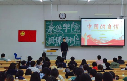 范兵老师从中华文明切入,给同学们带来了一节“中国自信”的主题团课。范老师与同学们交流探讨了复杂多变的国际形势,指出了我国在当今国际环境中的重要性,我们应当坚定文化自信、担当使命、奋发有为,共同努力创造属于我们这个时代的新文化,建设中华民族现代文明。中华文明博大精深、源远流长,我们许多领域都取得了有目共睹的巨大成就,我们有理由感到自信。他强调,我们身处百年未有之大变局,要保持历史清醒,坚定历史自信,创造更精彩的中国故事。