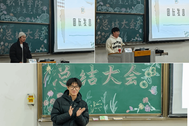 刘辉、郭展东、李昱达三位团长分别进行了真诚热情鼓舞人心的发言,他们对艺术团全体成员的辛勤付出和无私奉献表示衷心感谢,同时指出了各自工作中存在的不足。一路走来,部长队长们从慌乱无措到独当一面,干事们也在历练中逐渐成长起来,在接下来的日子里我们将继续携手奋进,共同创造更多的辉煌。