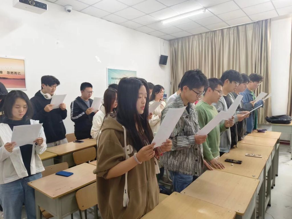 活动中,团支部书记从“经典人物”“经典战役”“价值内涵”和“现实意义”四个方面展开,带领支部团员和青年深刻学习并领悟革命文化和烈士精神。而后全体起立,一起诵读诗歌《中国人的清明节》。大家纷纷表示,作为新时代的大学生,要继承英烈遗志,传承红色基因,赓续红色血脉,在新征程中坚定不移听党话、跟党走,立志做有理想、敢担当、能吃苦、肯奋斗的好青年。