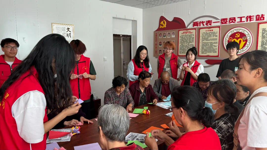 在活动的最后环节,志愿者们还教老人们学习折纸艺术。他们准备了各种颜色的纸张,一边讲解一边示范,让老人们感受到了折纸的乐趣和魅力。老人们纷纷动手尝试,不一会儿,一张张平凡的纸张在他们手中变成了形态各异、色彩斑斓的纸艺作品。