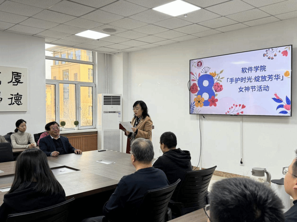 首先,赵涓涓为本次活动致辞,她将学院特点与女性特色相结合,用程序员的方式向女教职工表达祝福,以科技赋能女性成长为主线,借“致匠心”铭刻数据为尺的教学守望(教学科研数据化呈现),凭“致芳华”舒展刚柔并济的职业本色(职业关怀体系化设计),用“致未来”架构开放包容的成长生态(祝福语码农化表达)----三维视角织就理性与温情的经纬网络,让代码行间跃动人文脉搏,立体诠释数字时代「她力量』的专业锋芒与精神海拔。