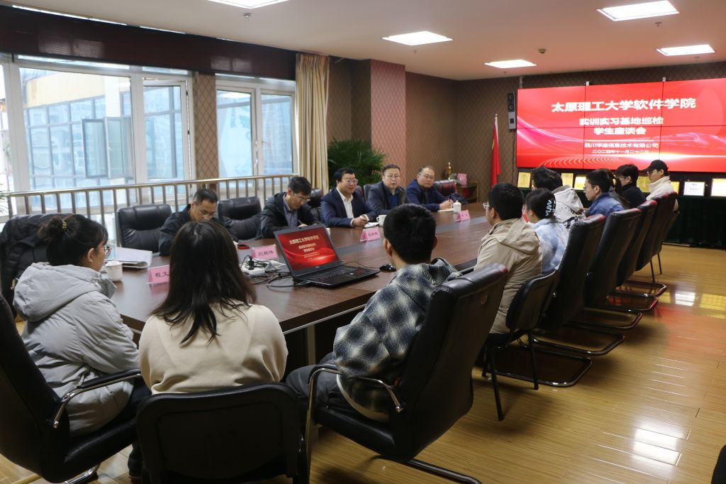 在校企座谈交流会上,华迪信息总裁惠兴海对巡检组一行的到来表示热烈欢迎,并简要介绍了在训学生的基本情况。随后,副总裁王强全面介绍了华迪信息的基本情况,包括公司的发展历程、业务范围以及校企合作成果等。产教融合部副总经理蒋平则详细汇报了新浦金350vip官方软件工程专业2021级移动互联方向的教学课程安排、教学情况、学生活动以及学生安全保障等内容。就业服务负责人蔡雅丽汇报了新浦金350vip官方华迪基地历届学生的就业情况,展示了华迪信息在促进学生就业方面的积极努力和显著成果。