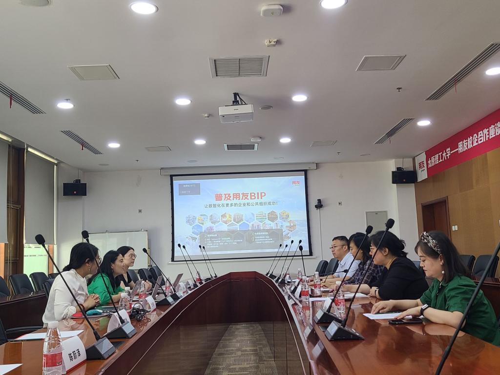 赵涓涓一行与近年来入职用友网络科技股份有限公司的校友进行座谈,详细了解校友的工作内容、成长历程以及对学院和学弟学妹们的建议。