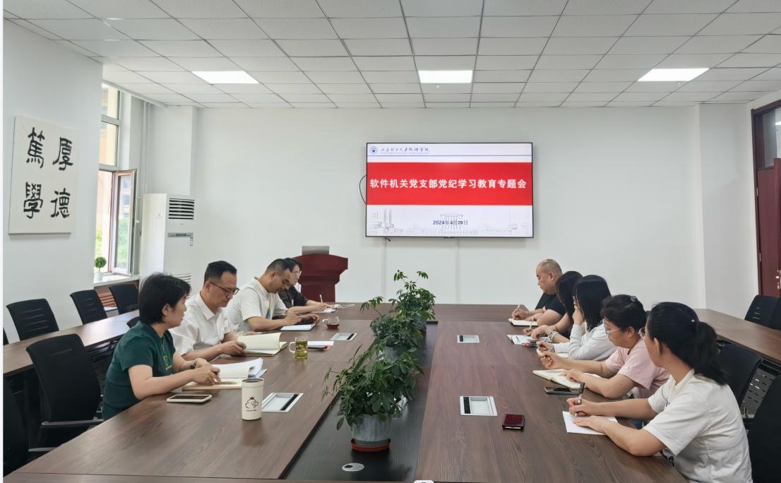 4月29日,软件机关党支部在学院311会议室召开了党纪学习教育第一次专题会议,支部全体党员参会,会议由党支部书记王帆主持。