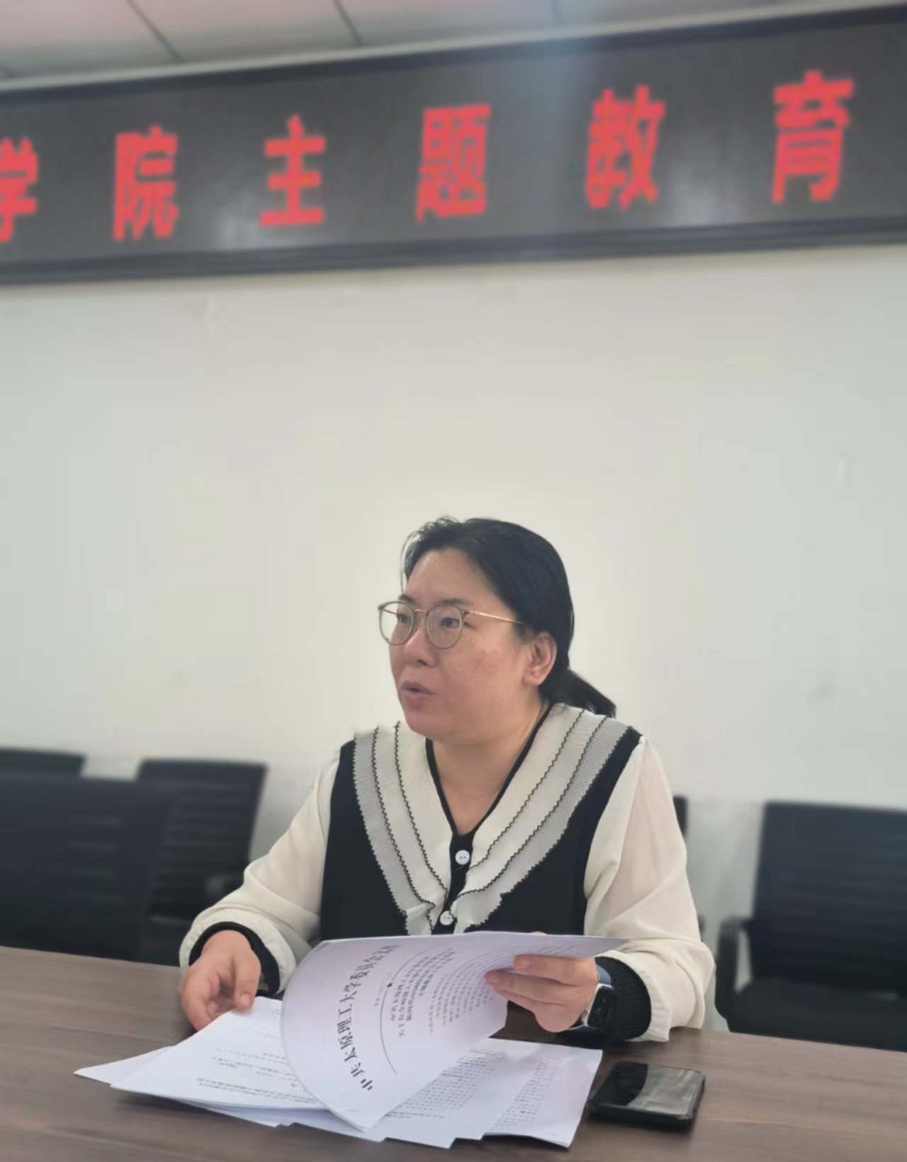 随后,赵涓涓强调在全面贯彻党的二十大精神开局之年,全党开展主题教育具有十分重大的意义。把学习贯彻习近平新时代中国特色社会主义思想引向深入,正当其时。她结合主题教育的目标任务与学院工作安排向大家提出具体要求,希望大家在学思用、知信行中锤炼党性、指导实践、推动工作、全力以赴。