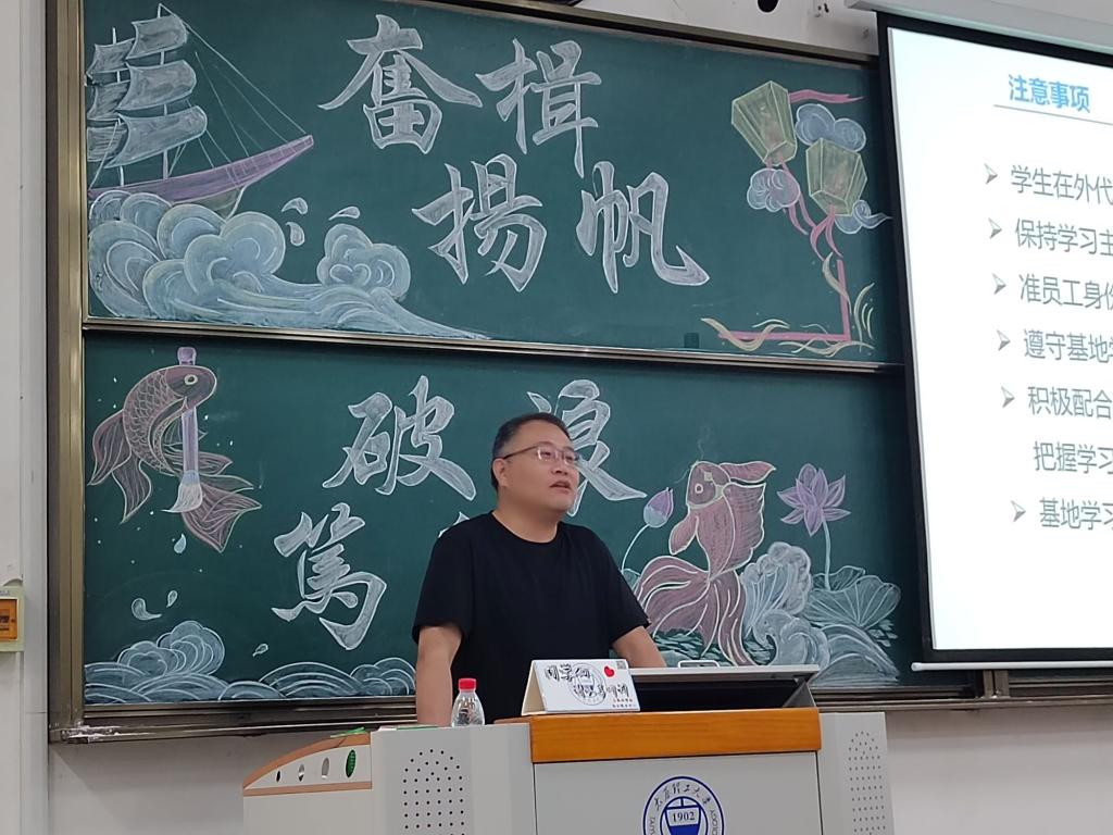 张希琼就实训实习期间学生管理相关规章和安全工作进行说明,详细讲解了基地学生管理规范、相关考勤制度、外出实习管理办法以及大四的主要基本工作。