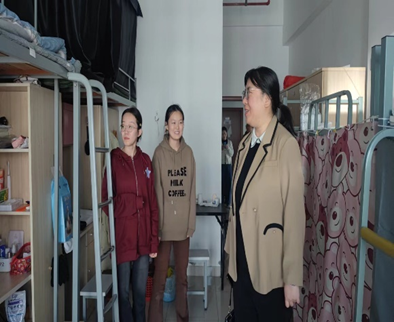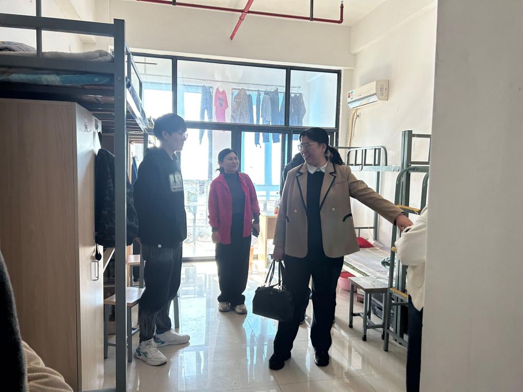 座谈会后,学院老师前往宿舍看望慰问学生,进一步了解学生的日常生活状态。此间,老师们与学生亲切交流,鼓励学生要珍惜在基地的学习机会,不断提高自己的综合素质和就业竞争力。同时,郭飞还多次提醒学生要遵守基地的安全管理制度、提高个人安全意识,防患于未然。
