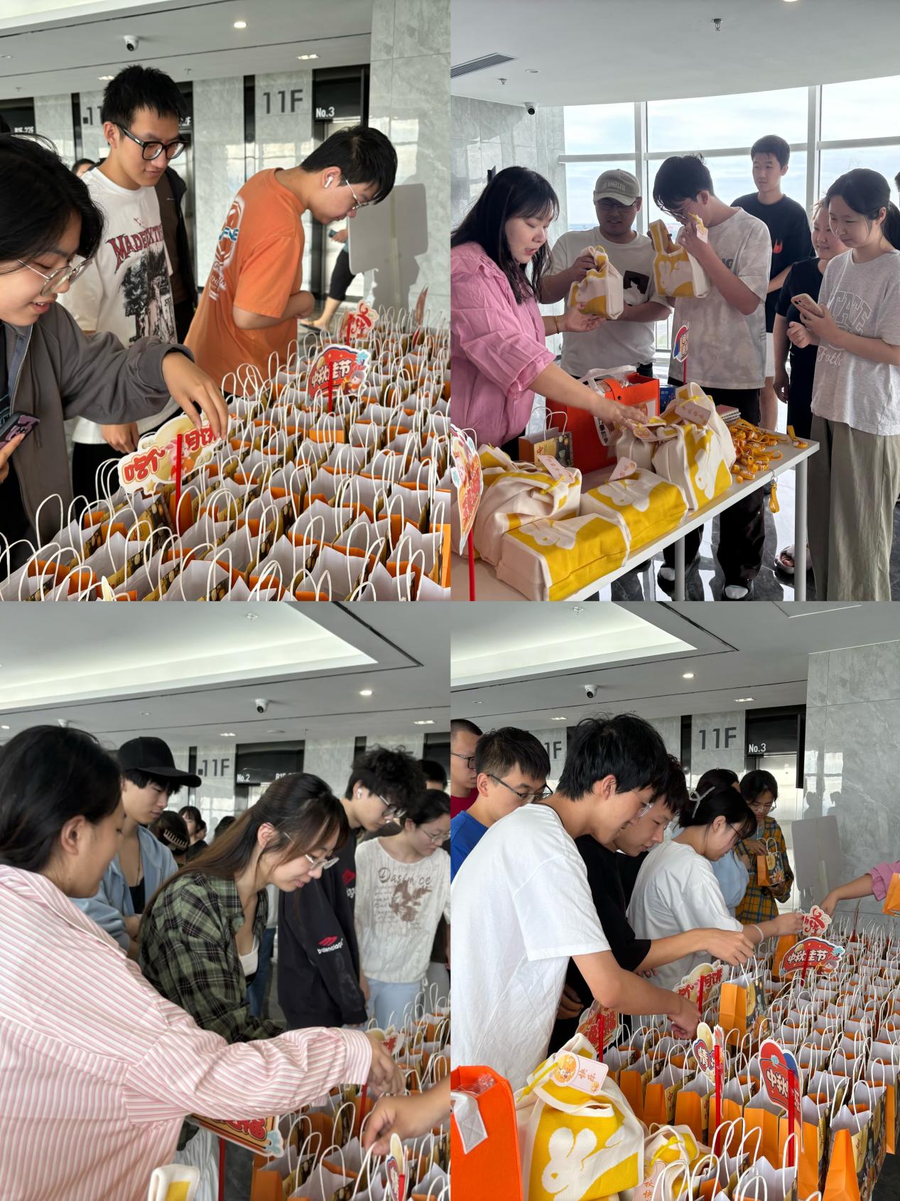活动的重头戏之一是月饼派发。活动现场张灯结彩,处处弥漫着中秋佳节的喜庆气息。为了让实训实习基地的同学们感受到浓厚的节日氛围和企业的关怀,实训实习基地精心为每一位同学准备了一份特别的礼品袋。礼品袋中不仅有象征着团圆的美味月饼,还有充满惊喜的刮刮乐。各种口味的月饼满足了不同同学的口味偏好。这一举动不仅让同学们感受到了节日的氛围,也体现了实训实习基地对传统文化的尊重与传承。新浦金350vip官方全体学生积极参与,也让远离家乡的同学们在这个特殊的节日里感受到了家一般的温暖,在欢声笑语中共同迎接中秋佳节的到来。