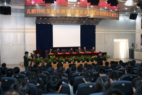 学校举行新浦金官网校友孔鹏伟创业报告会暨百思富就业资助金发放仪式